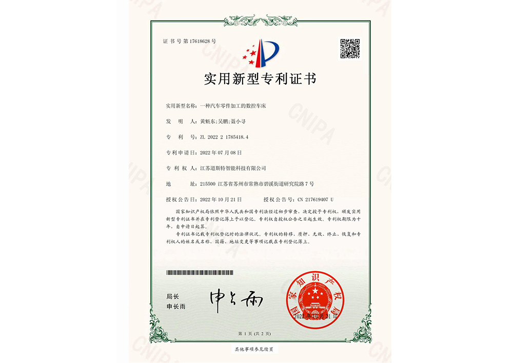 一种汽车零件加工的数控车床实用新型专利